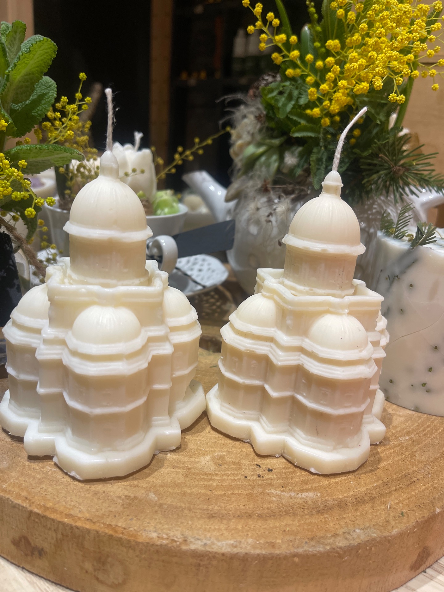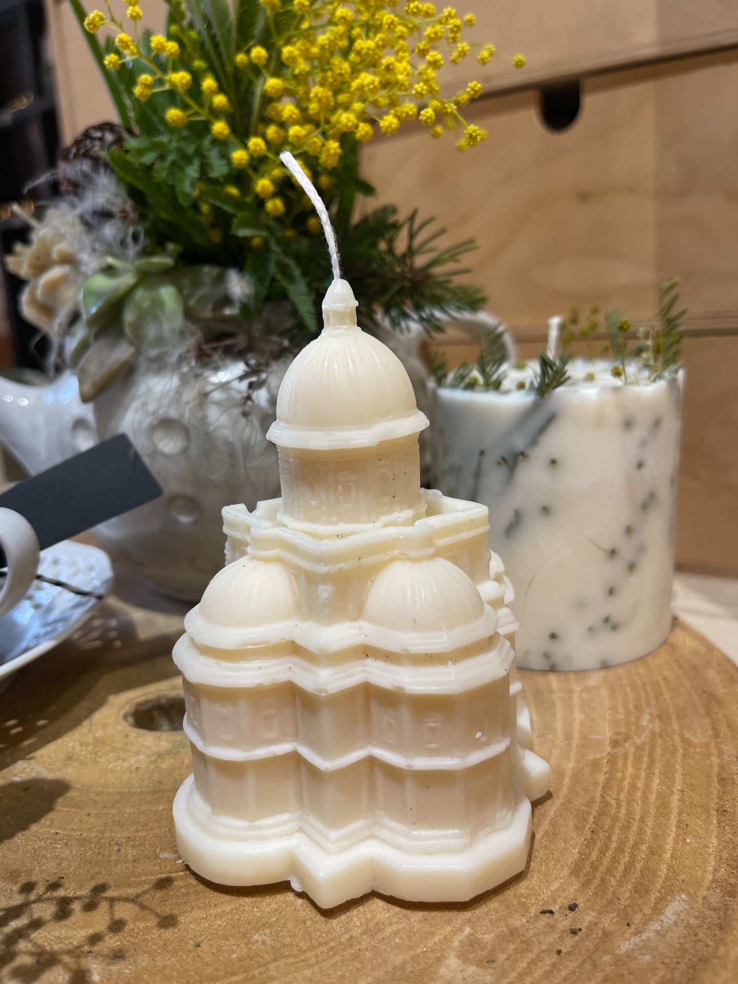 Ispirata alla forma armoniosa della chiesa rinascimentale di Santa Maria della Consolazione, questa candela porta con sé un senso di equilibrio, pace e consolazione.
