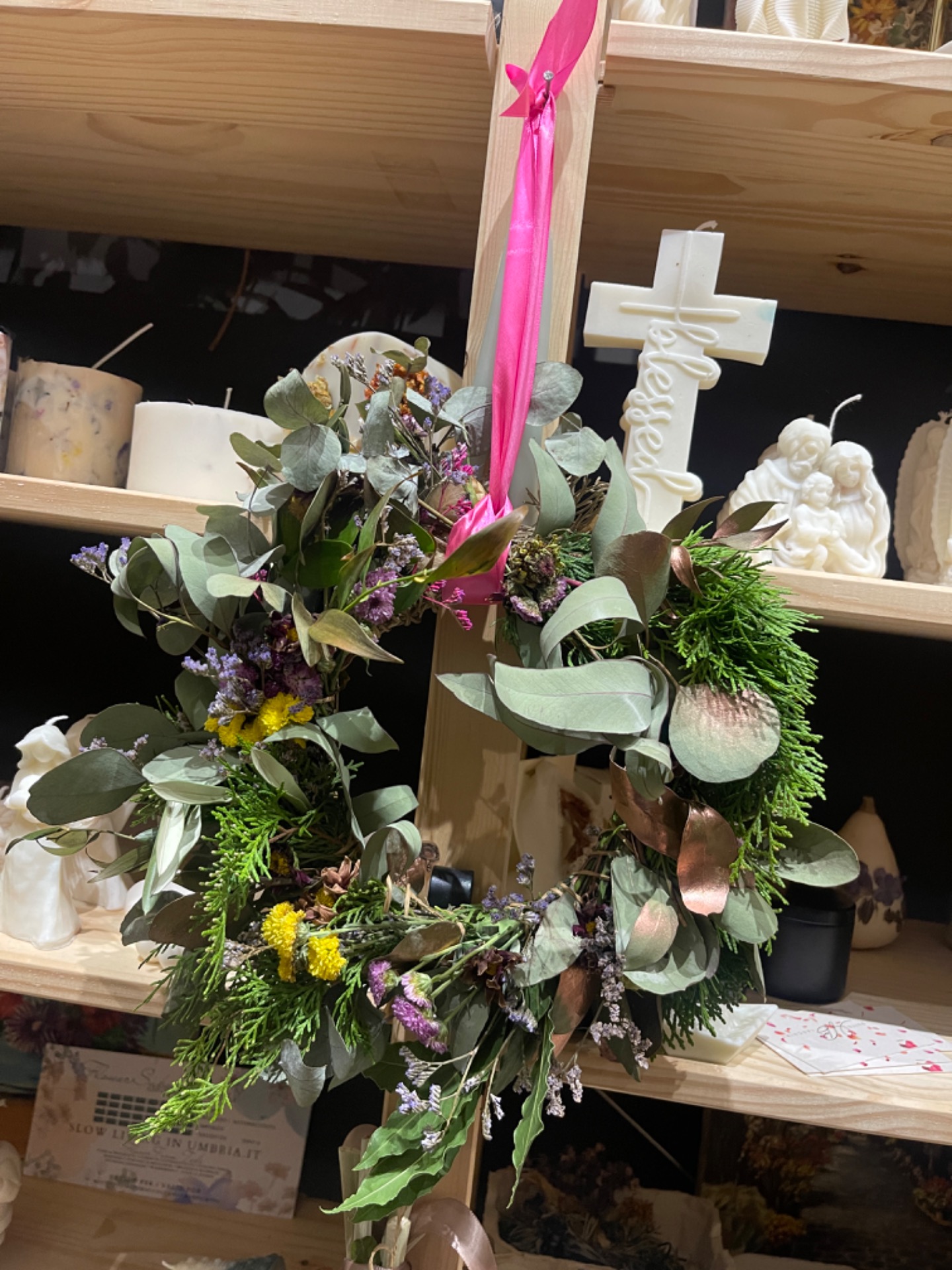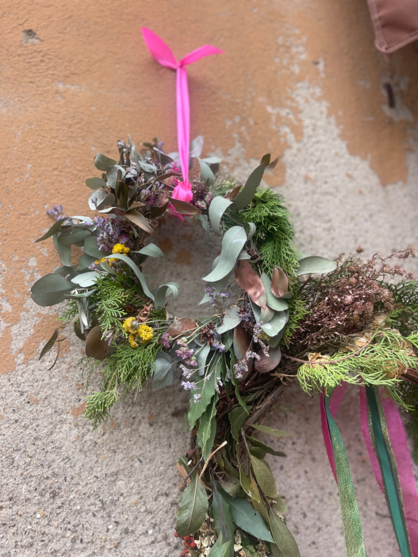 Each wreath is one of a kind and entirely handmade. Since it is composed of natural materials, slight color changes over time are normal. To keep it looking its best, it is recommended to avoid direct sunlight, moisture, and prolonged outdoor exposure, helping preserve its shape and appearance over time